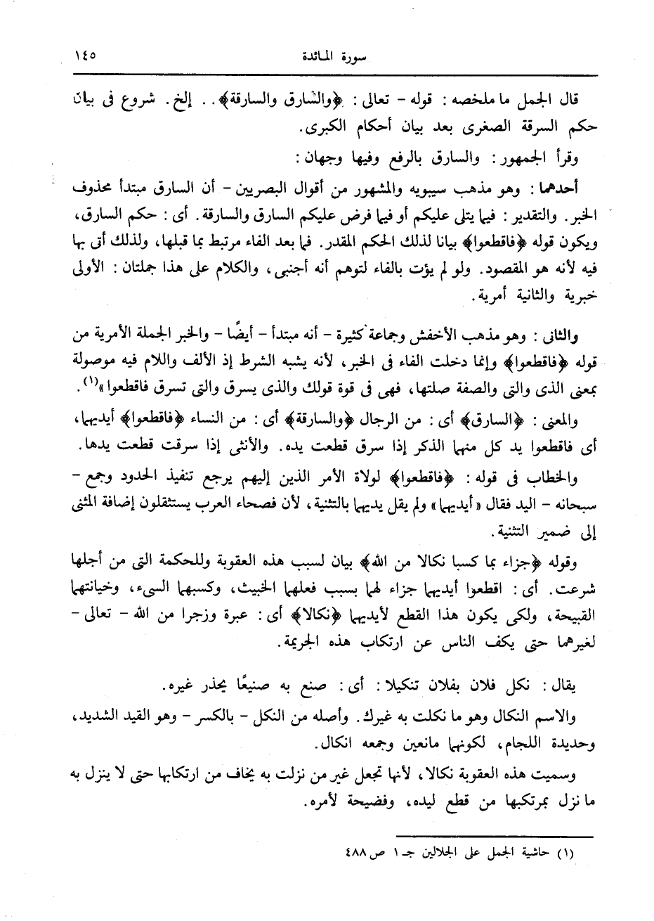 (1) حاشية الجمل على الجلالين ج 1 ص 488