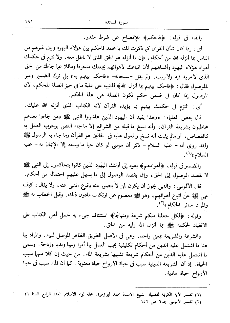 (1) تفسير الآية الكريمة لفضيلة الشيخ الأستاذ محمد أبو زهرة. مجلة لواء الإسلام العدد الرابع السنة 21