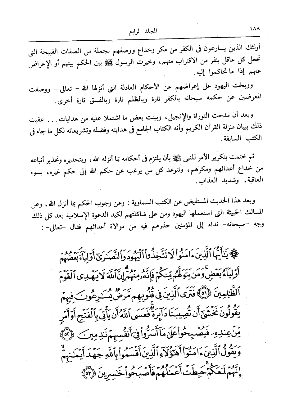 وبعد هذا الحديث المستفيض عن الكتب السماوية: وعن وجوب الحكم بما أنزل الله، وعن المسالك الخبيثة التي استعملها اليهود ومن على شاكلتهم لكيد الدعوة الإسلامية بعد كل ذلك وجه- سبحانه- نداء إلى المؤمنين حذرهم فيه من موالاة أعدائهم فقال- تعالى-: