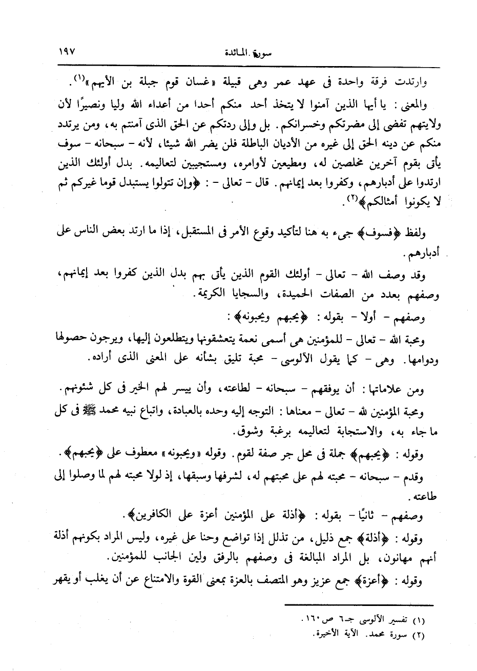 ومحبة الله- تعالى- للمؤمنين هي أسمى نعمة يتعشقونها ويتطلعون إليها، ويرجون حصولها ودوامها. وهي- كما يقول الآلوسى- محبة تليق بشأنه على المعنى الذي أراده.
