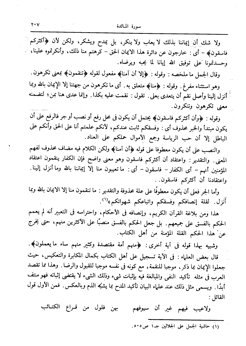 (1) حاشية الجمل على الجلالين ج 1 ص 505.