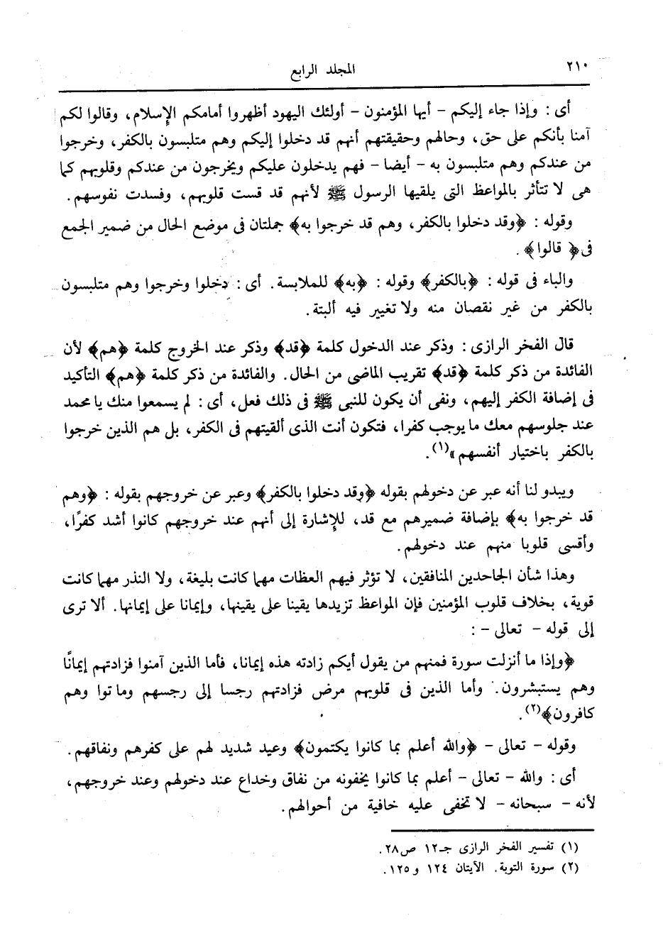 (2) سورة التوبة. الآيتان 124 و 125.
