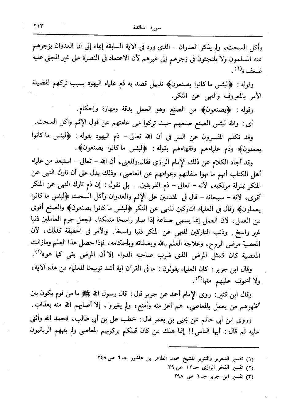 (1) تفسير التحرير والتنوير للشيخ محمد الطاهر بن عاشور ج 6 ص 248