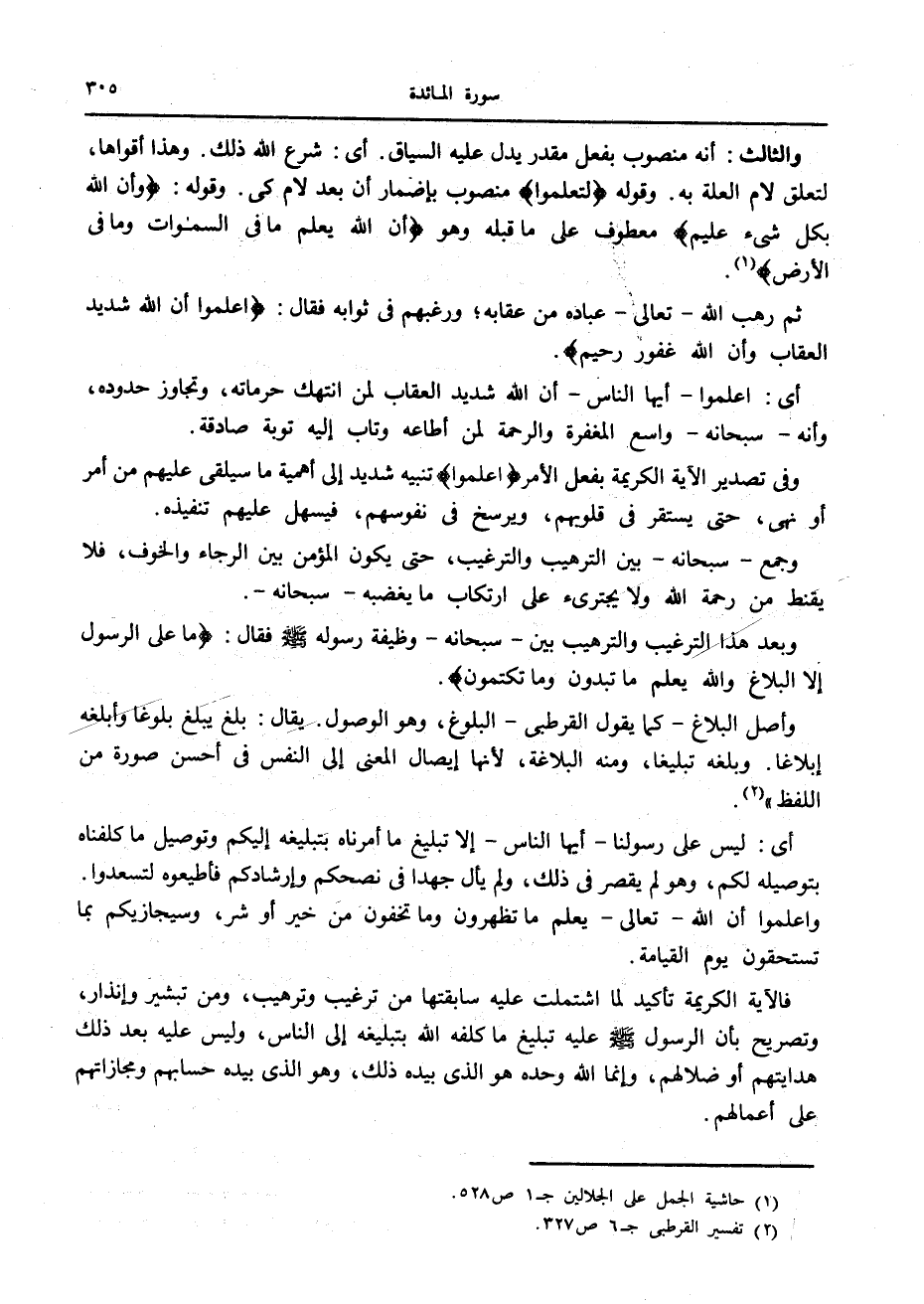 (1) حاشية الجمل على الجلالين ج 1 ص 528.