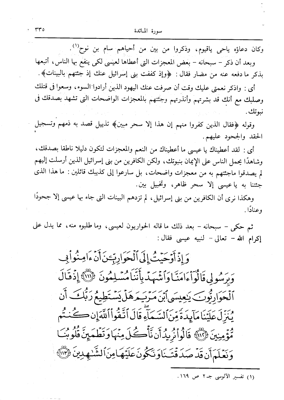 ثم حكى- سبحانه- بعد ذلك ما قاله الحواريون لعيسى، وما طلبوه منه، مما يدل على إكرام الله- تعالى- لنبيه عيسى فقال: