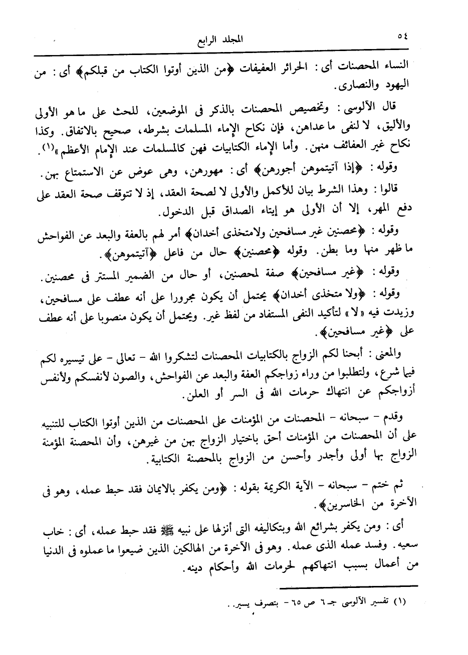 وقدم- سبحانه- المحصنات من المؤمنات على المحصنات من الذين أوتوا الكتاب للتنبيه على أن المحصنات من المؤمنات أحق باختيار الزواج بهن من غيرهن، وأن المحصنة المؤمنة الزواج بها أولى وأجدر وأحسن من الزواج بالمحصنة الكتابية.