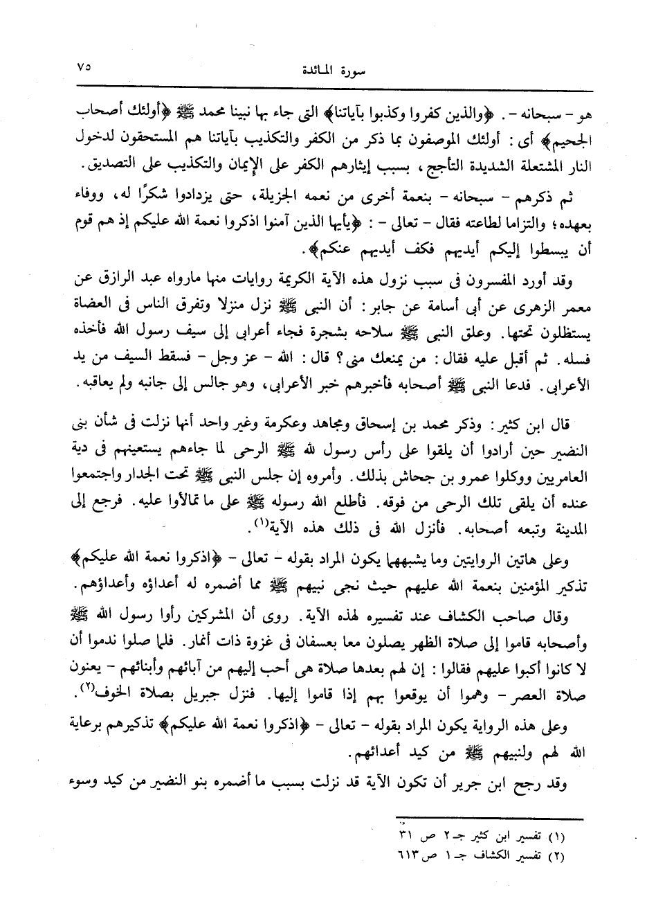 وعلى هاتين الروايتين وما يشبههما يكون المراد بقوله- تعالى- اذْكُرُوا نِعْمَتَ اللَّهِ عَلَيْكُمْ تذكير المؤمنين بنعمة الله عليهم حيث نجى نبيهم صلّى الله عليه وسلّم مما أضمره له أعداؤه وأعداؤهم.