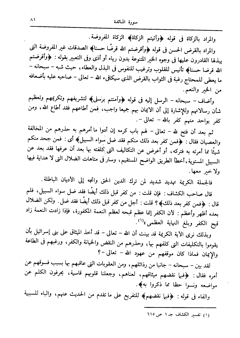 لقد بين- سبحانه- جانبا من رذائلهم، ومن العقوبات التي عاقبهم بها بسبب فسوقهم عن أمره فقال: فَبِما نَقْضِهِمْ مِيثاقَهُمْ، لَعَنَّاهُمْ، وَجَعَلْنا قُلُوبَهُمْ قاسِيَةً، يُحَرِّفُونَ الْكَلِمَ عَنْ مَواضِعِهِ وَنَسُوا حَظًّا مِمَّا ذُكِّرُوا بِهِ.