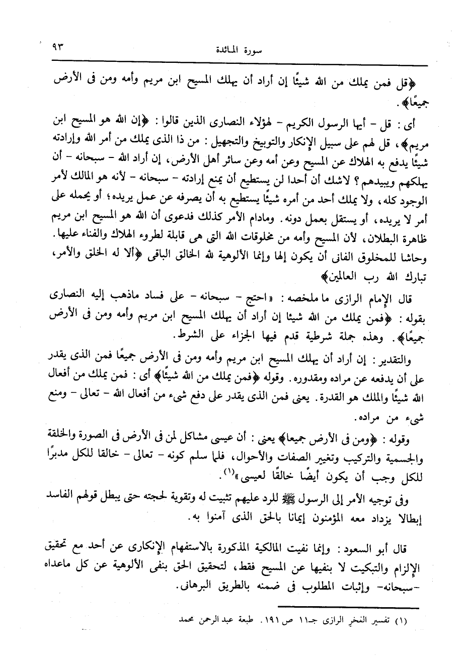 (1) تفسير الفخر الرازي ج 11 ص 191. طبعة عبد الرحمن محمد