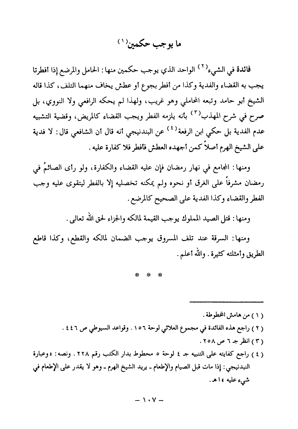 (¬4) راجع كفايته علي التنبيه جـ 4 لوحة 5 محطوط بدار الكتب رقم 228. ونصه: "وعبارة النبدنيجي: إِذا مات قبل الصيام والإطعام -يريد الشيخ الهرم- وهو لا يقدر علي الإِطعام في شيء عليه" اهـ.