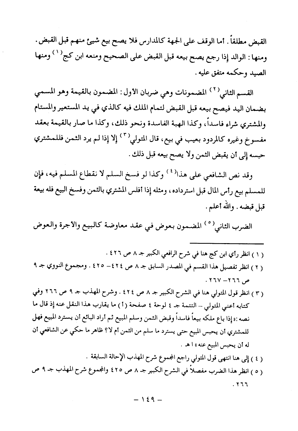(¬2) انظر تفصيل هذا القسم في المصدر السابق جـ 8 ص 424 - 425. ومجموع النووى ص 9 ص 266 - 267.