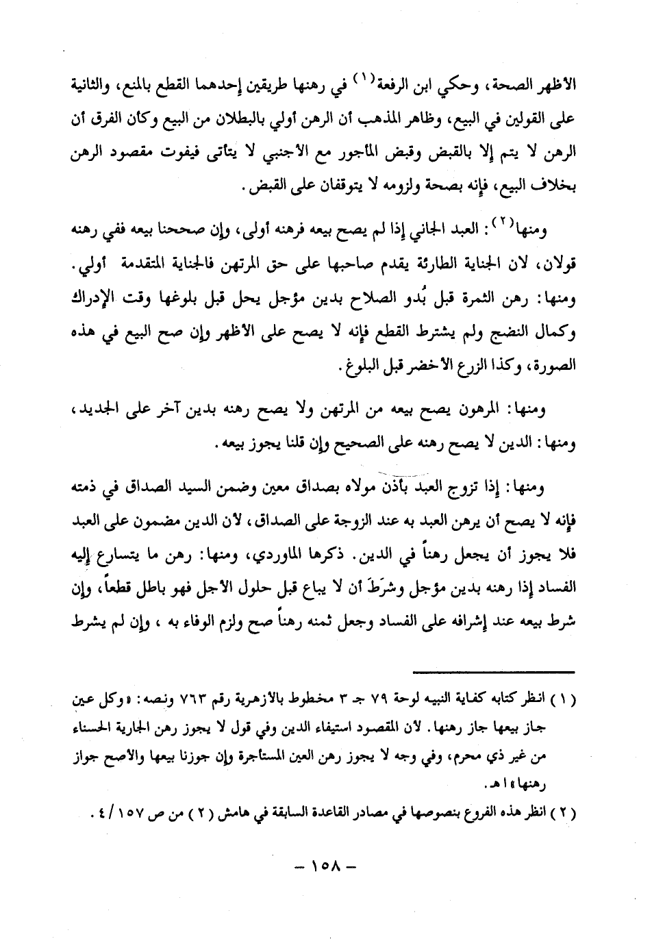 (¬1) انظر كتابه كفاية النبيه لوحة 79 جـ 3 مخطوط بالأزهرية رقم 763 ونصه: "وكل عين جاز بيعها جاز رهنها. لأن المقصود استيفاء الدين وفي قول لا يجوز رهن الجارية الحسناء من غير ذى محرم، وفي وجه لا يجوز رهن العين المستأجرة وإن حوزنا بيعها والأصح جواز رهنها" اهـ.