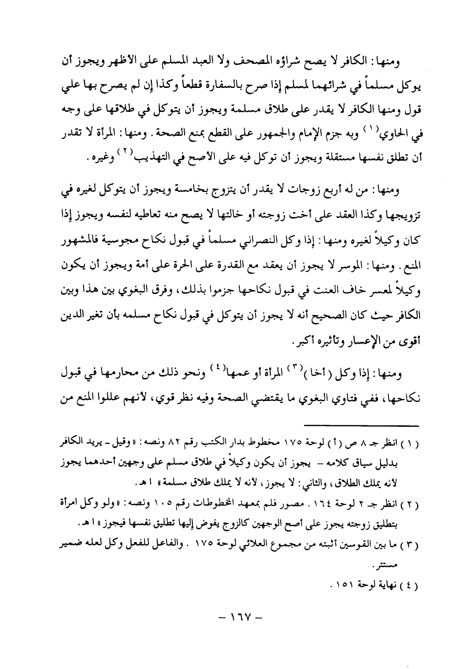 (¬2) انظر جـ 2 لوحة 164. مصور فلم بمعهد المخطوطات رقم 105 ونصه: "ولو وكل امرأة بتطليق زوجته يجوز على أصح الوجهين كالزوج يفوض إليها تطليق نفسها فيجوز" اهـ.