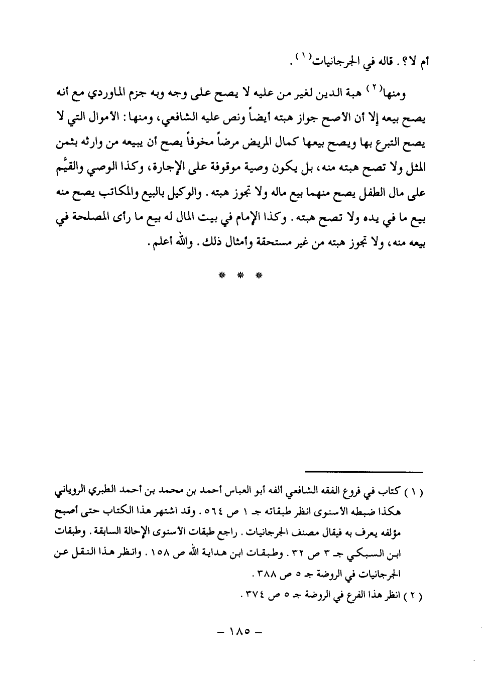 (¬1) كتاب في فروع الفقه الشافعي ألفه أبو العباس أحمد بن محمَّد بن أحمد الطبري الروياني هكذا ضبطه الأسنوى انظر طبقاته جـ 1 ص 564. وقد اشتهر هذا الكتاب حتى أصبح مؤلفه يعرف به فيقال مصنف الجرجانيات. راجع طبقات الأسنوى الإحالة السابقة. وطبقات ابن السبكي جـ 3 ص 32. وطبقات ابن هداية الله ص 158. وانظر هذا النقل عن الجرجانيات في الروضة جـ 5 ص 388.
