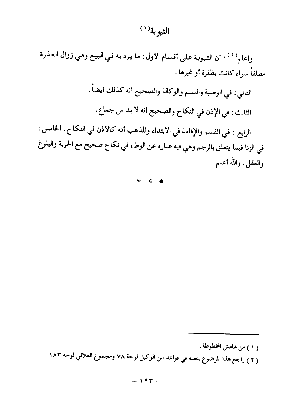(¬2) راجع هذا الموضوع بنصه في قواعد ابن الوكيل لوحة 78 ومجموع العلائي لوحة 183.
