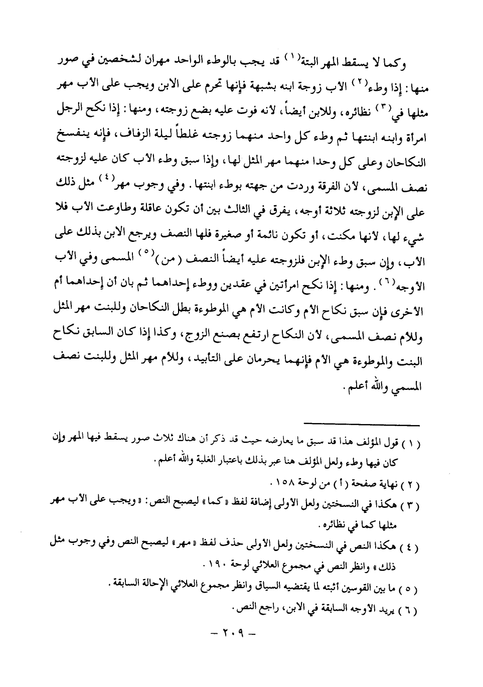 (¬4) هكذا النص في النسختين ولعل الأول حذف لفظ "مهر" ليصبح النص وفي وجوب مثل ذلك" وانظر النص في مجموع العلائي لوحة 190.