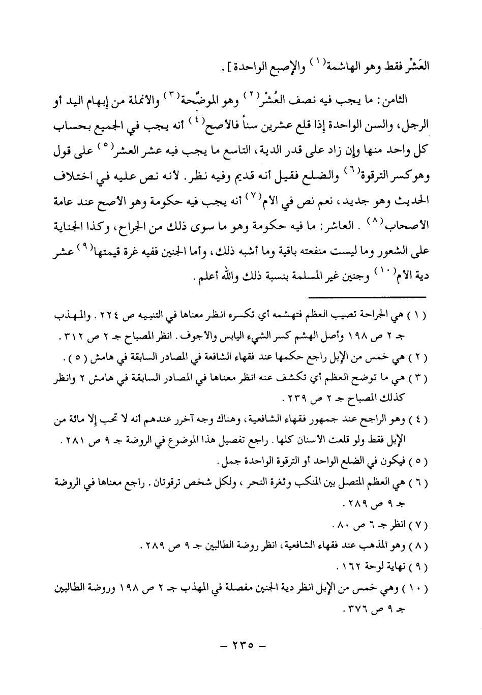 (¬1) هي الجراحة تصيب العظم فتهشمه أي تكسره انظر معناها في التنبيه ص 224. والمهذب جـ 2 ص 198 وأصل الهشم كسر الشيء اليابس والأجوف. انظر المصباح جـ 2 ص 312.