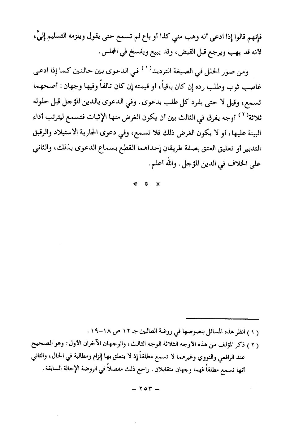 (¬1) انظر هذه المسائل بنصوصها في روضة الطالبين جـ 12 ص 18 - 19.