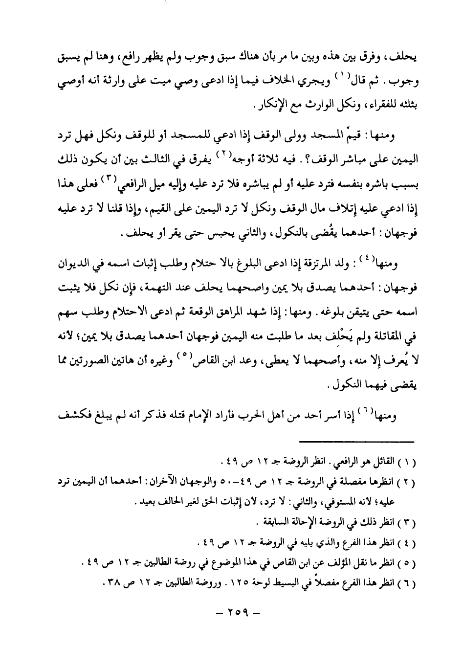 (¬6) انظر هذا الفرع مفصلاً في البسيط لوحة 125. وروضة الطالبين جـ 12 ص 38.
