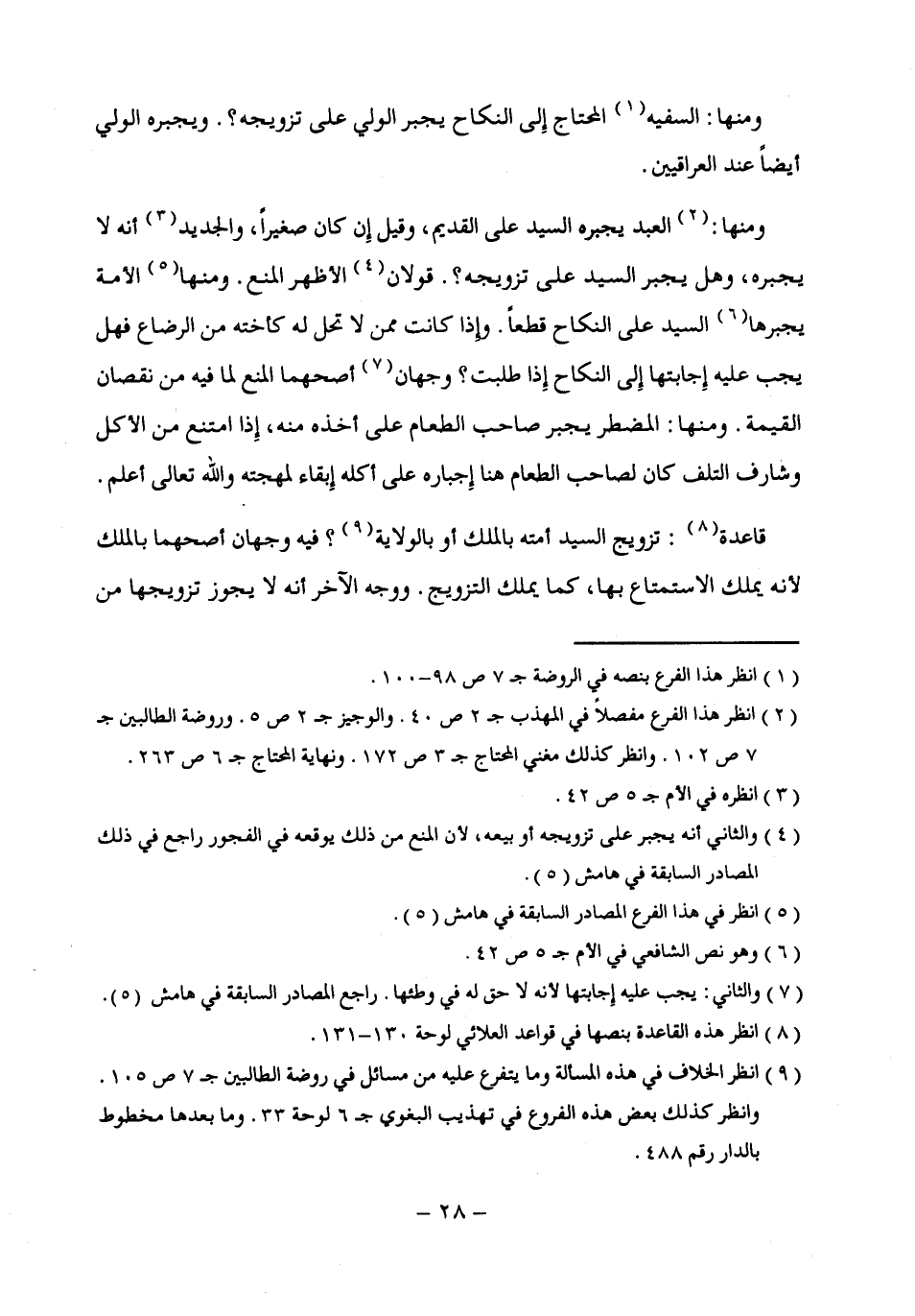 (¬4) والثاني أنه يجبر على تزويجه أو بيعه؛ لأن المنع من ذلك يوقعه في الفجور راجع في ذلك المصادر السابقة في هامش (5).