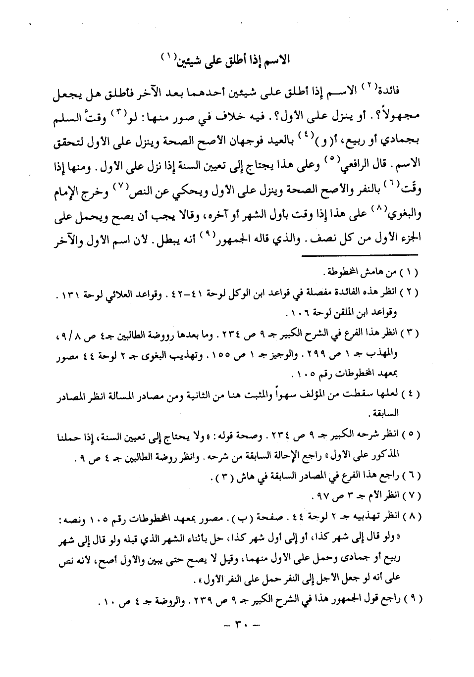 (¬3) انظر هذا الفرع في الشرح الكبير جـ 9 ص 234. وما بعدها وروضة الطالبين جـ 4 ص 8/ 9، والمهذب جـ 1 ص 299. والوجيز جـ 1 ص 155. وتهذيب البغوي جـ 2 لوحة 44 مصور بمعهد المخطوطات رقم 105.