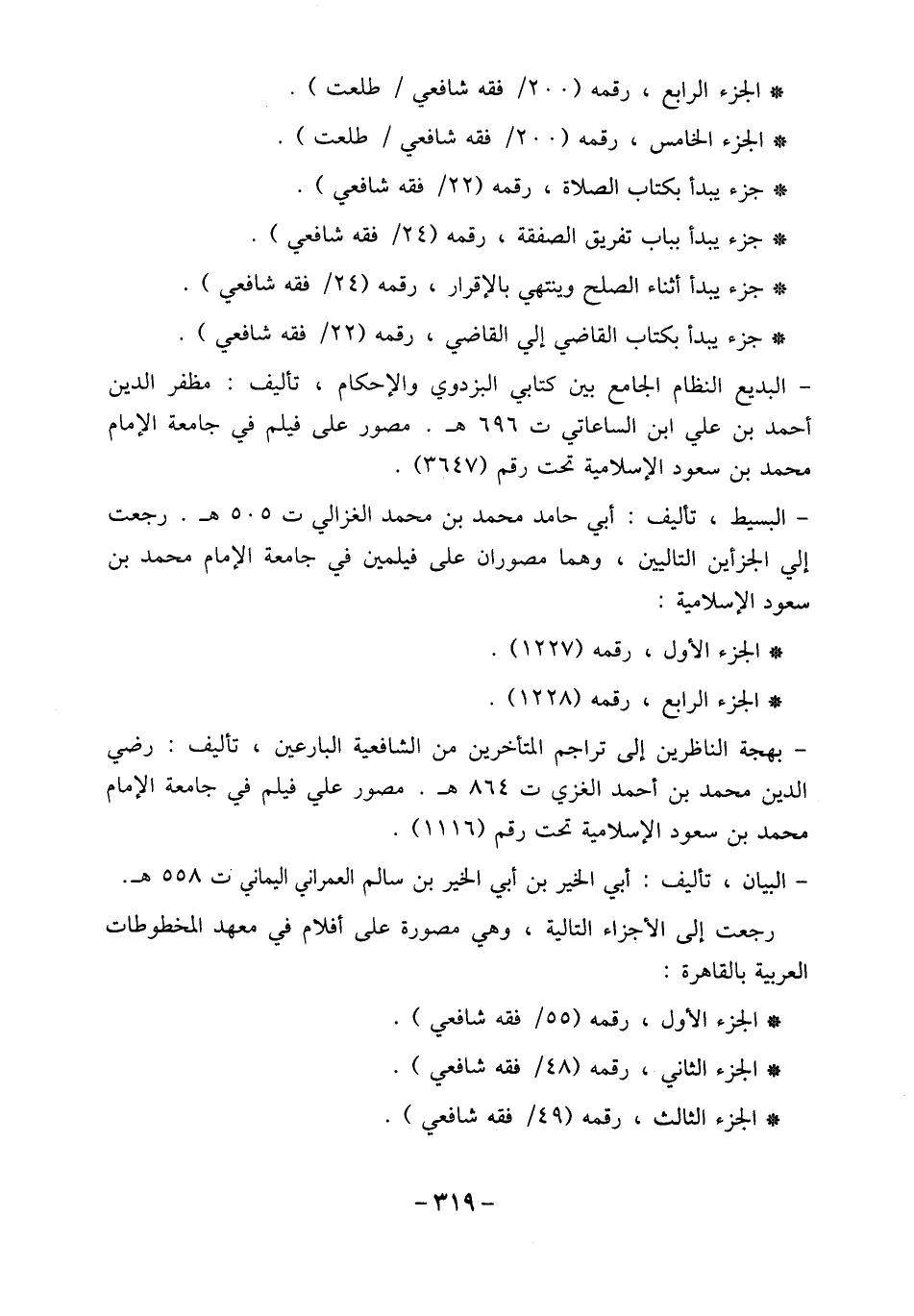 - البسيط، تأليف: أبي حامد محمد بن محمد الغزالي ت 505 هـ. رجعت إلي الجزأين التاليين، وهما مصوران على فيلمين في جامعة الإمام محمد بن سعود الإسلامية:
