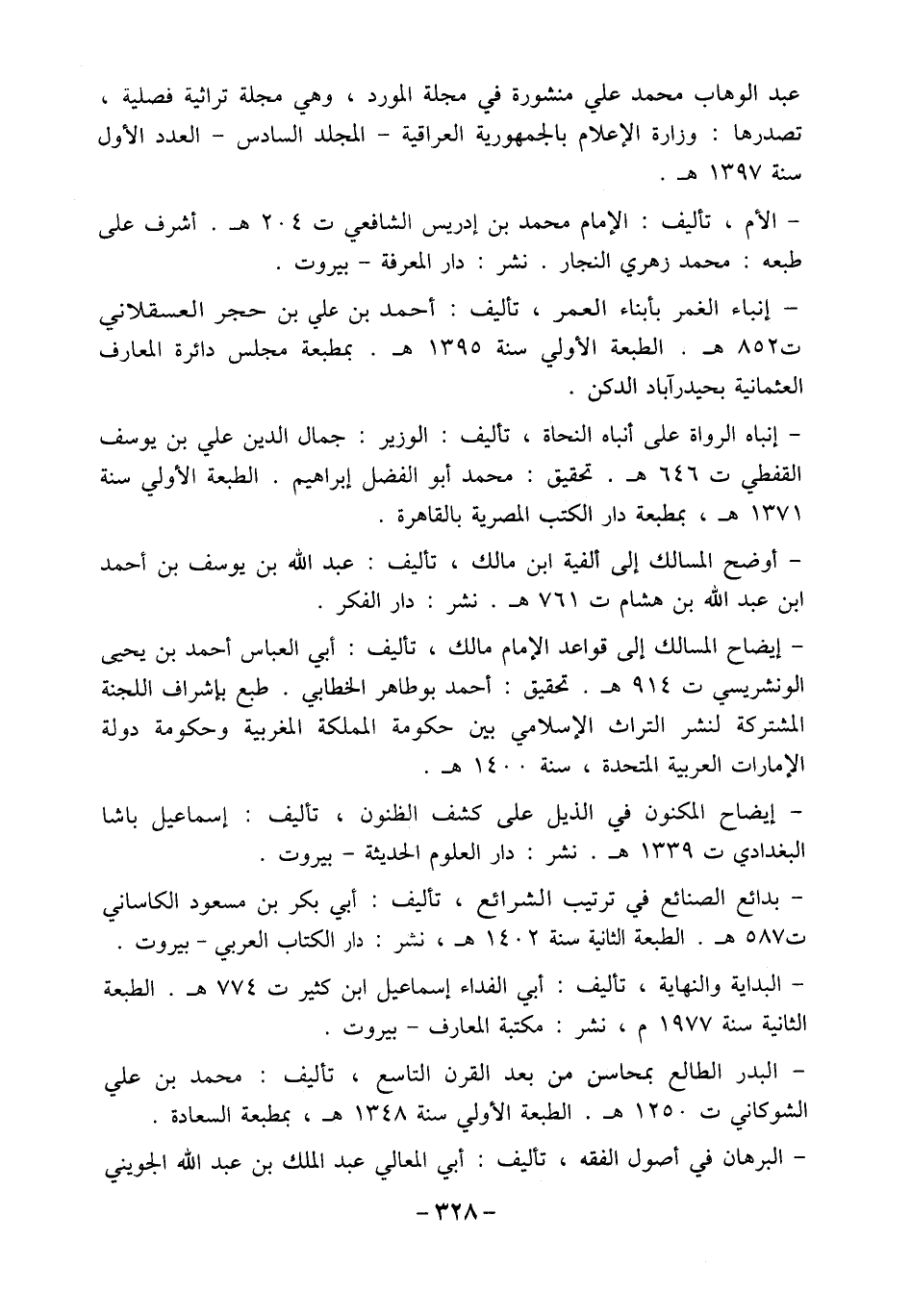 عبد الوهاب محمد علي منشورة في مجلة المورد، وهي مجلة تراثية فصلية، تصدرها: وزارة الإعلام بالجمهورية العراقية - المجلد السادس - العدد الأول سنة 1397 هـ.