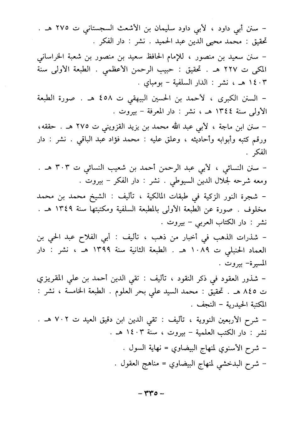 - سنن النسائي؛ لأبي عبد الرحمن أحمد بن شعيب النسائي ت 303 هـ. ومعه شرحه لجلال الدين السيوطي. نشر: دار الفكر - بيروت.