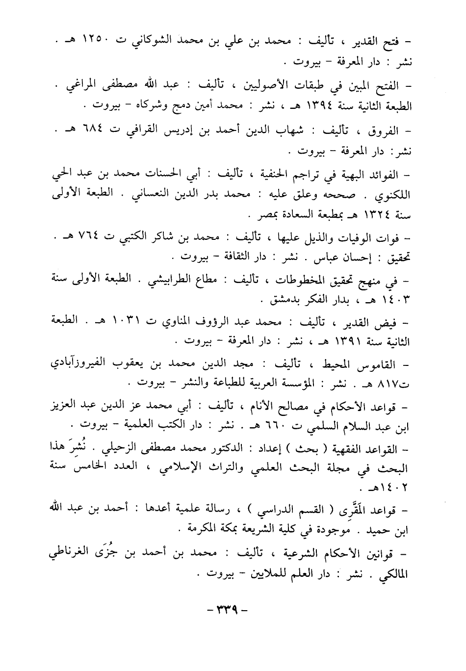 - الفروق، تأليف: شهاب الدين أحمد بن إدريس القرافي ت 684 هـ. نشر: دار المعرفة - بيروت.