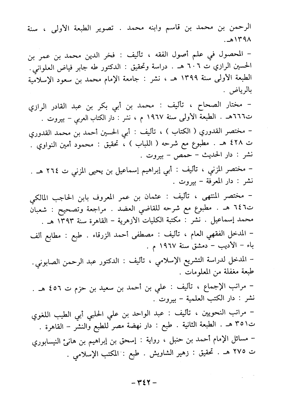 - المدخل لدراسة التشريع الإسلامي، تأليف: الدكتور عبد الرحمن الصابوني. طبعة مغفلة من المعلومات.