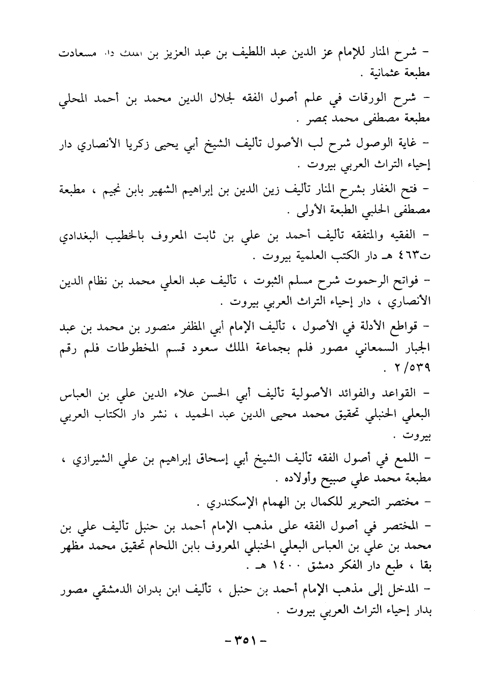 - شرح الورقات في علم أصول الفقه لجلال الدين محمد بن أحمد المحلي مطبعة مصطفى محمد بمصر.