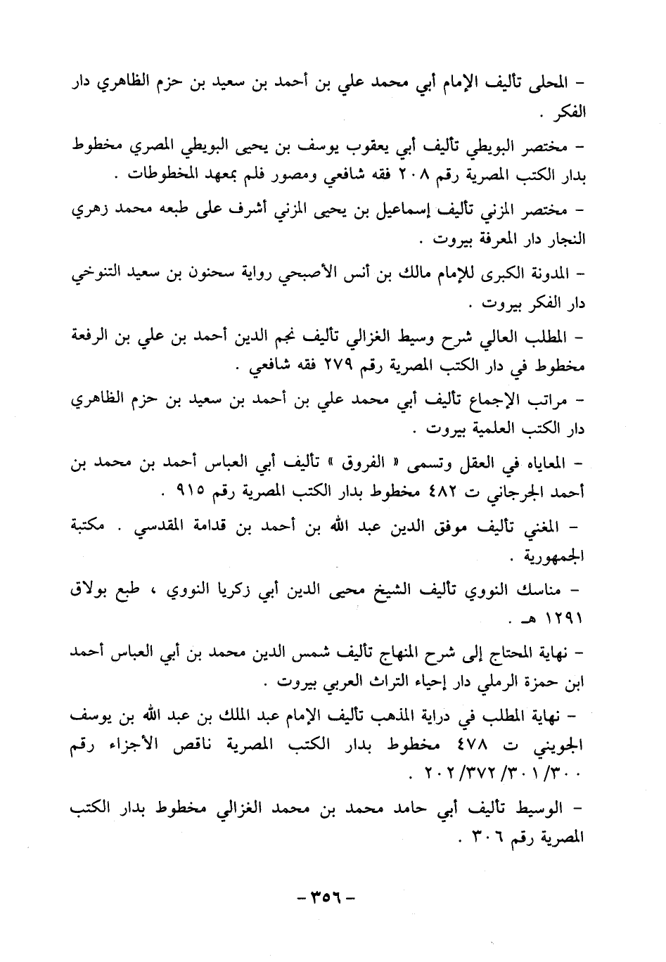 - نهاية المطلب في دراية المذهب تأليف الإمام عبد الملك بن عبد الله بن يوسف الجويني ت 478 مخطوط بدار الكتب المصرية ناقص الأجزاء رقم 300/ 301/ 372/ 202.