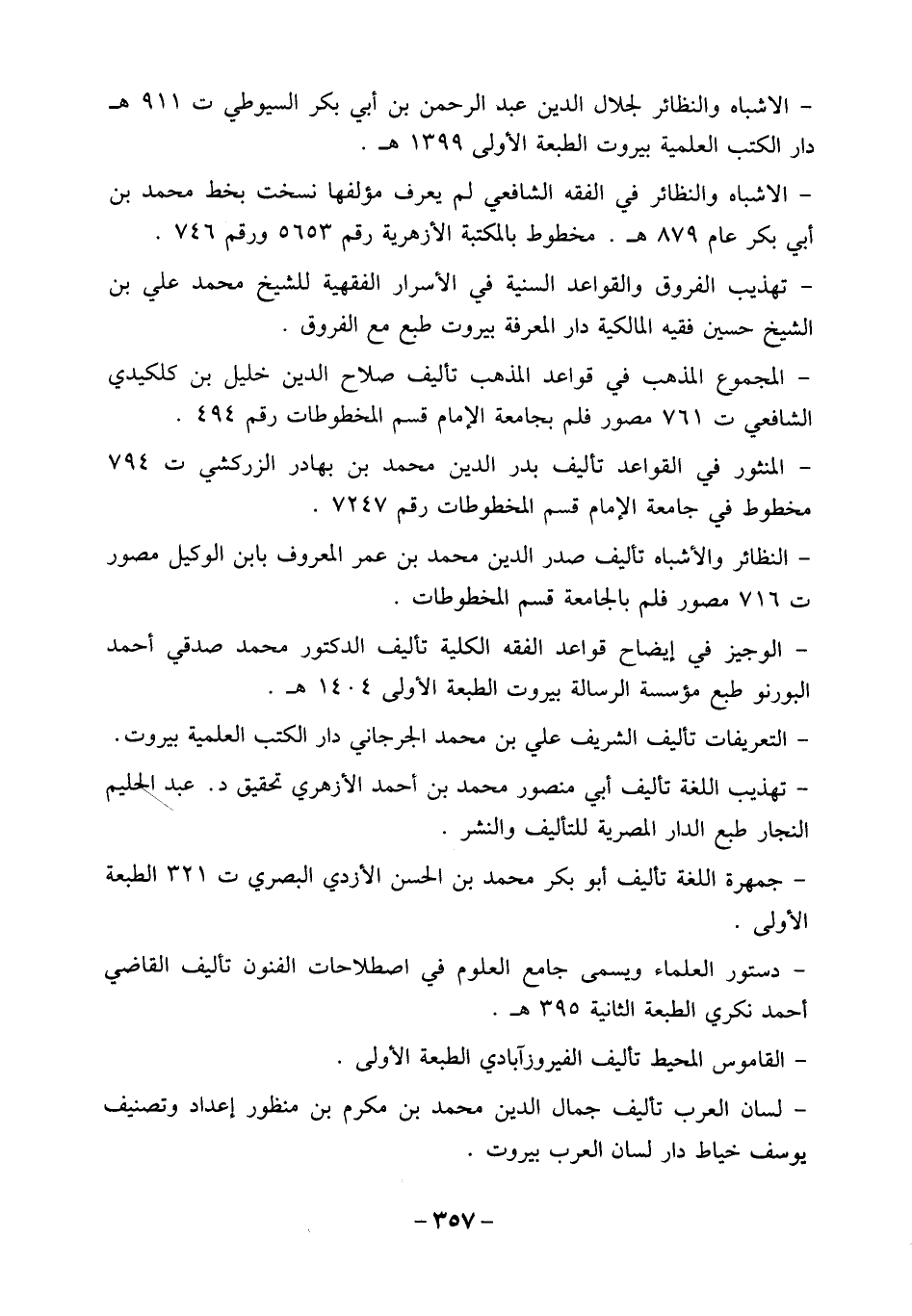 - الأشباه والنظائر لجلال الدين عبد الرحمن بن أبي بكر السيوطي ت 911 هـ دار الكتب العلمية بيروت الطبعة الأولى 1399 هـ.