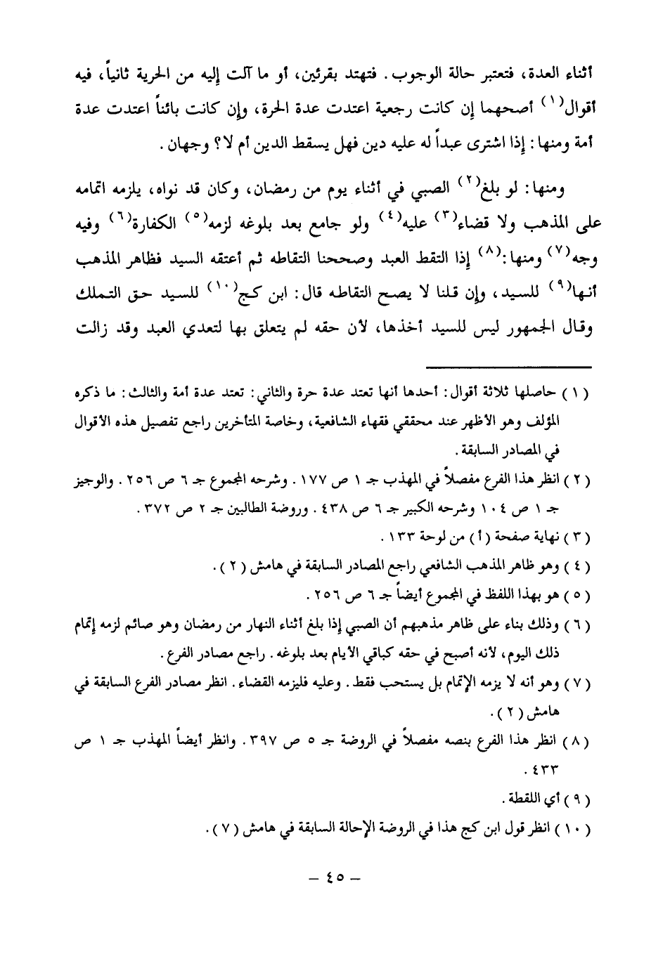 (¬8) انظر هذا الفرع بنصه مفصلًا في الروضة جـ 5 ص 397. وانظر أيضًا المهذب جـ 1 ص 433.