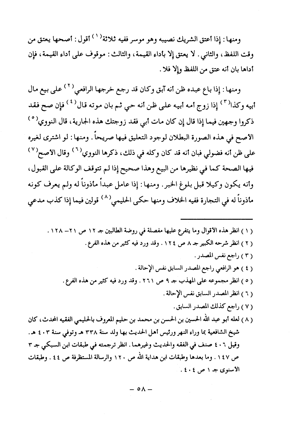 (¬5) انظر مجموعه علي المهذب جـ 9 ص 261. وقد ورد فيه كثير من هذه الفرع.