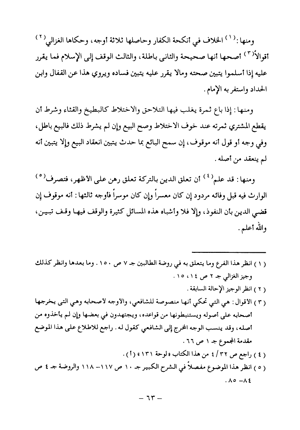 (¬5) انظر هذا الموضوع مفصلًا في الشرح الكبير جـ 10 ص 117 - 118 والروضة جـ 4 ص 84 - 85.