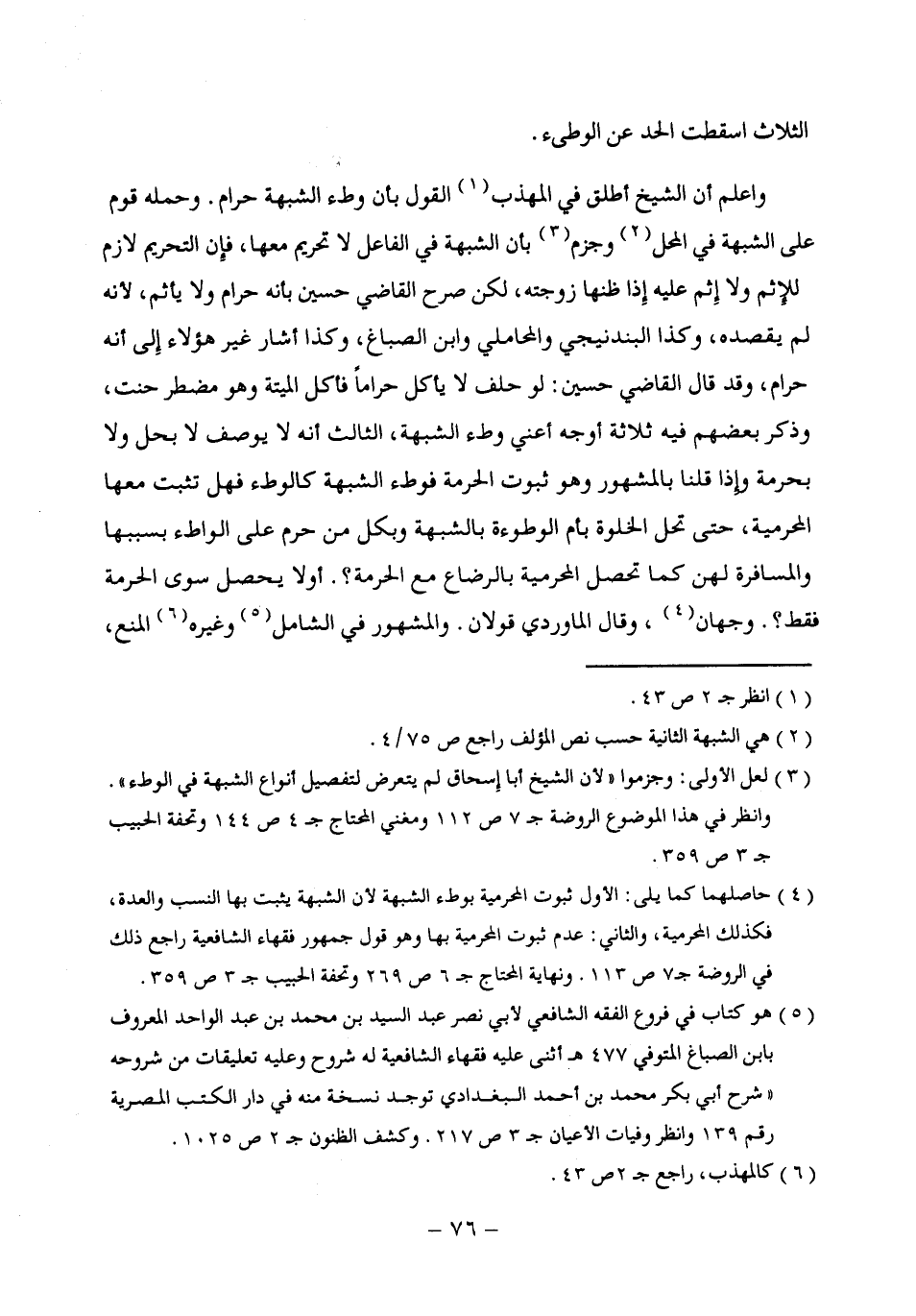 (¬3) لعل الأولى: وجزموا "لأن الشيخ أبا إسحاق لم يتعرض لتفصيل أنواع الشبهة في الوطء". وانظر في هذا الموضوع الروضة جـ 7 ص 112 ومغني المحتاج جـ 4 ص 144 وتحفة الحبيب جـ 3 ص 359.
