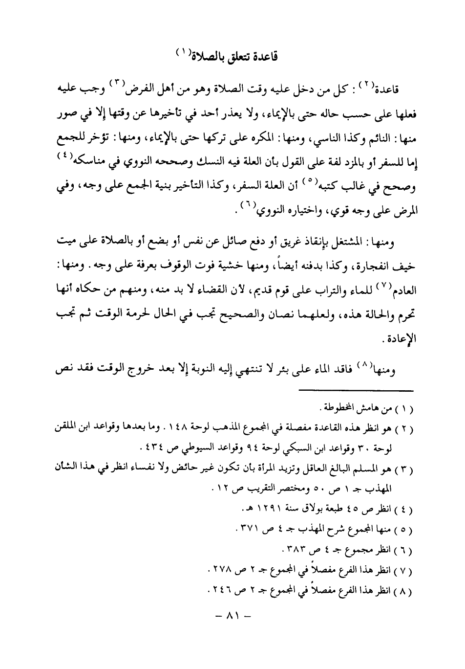 (¬2) هو انظر هذه القاعدة مفصلة في المجموع المذهب لوحة 148. وما بعدها وقواعد ابن الملقن لوحة 30 وقواعد ابن السبكي لوحة 94 وقواعد السيوطي ص 434.