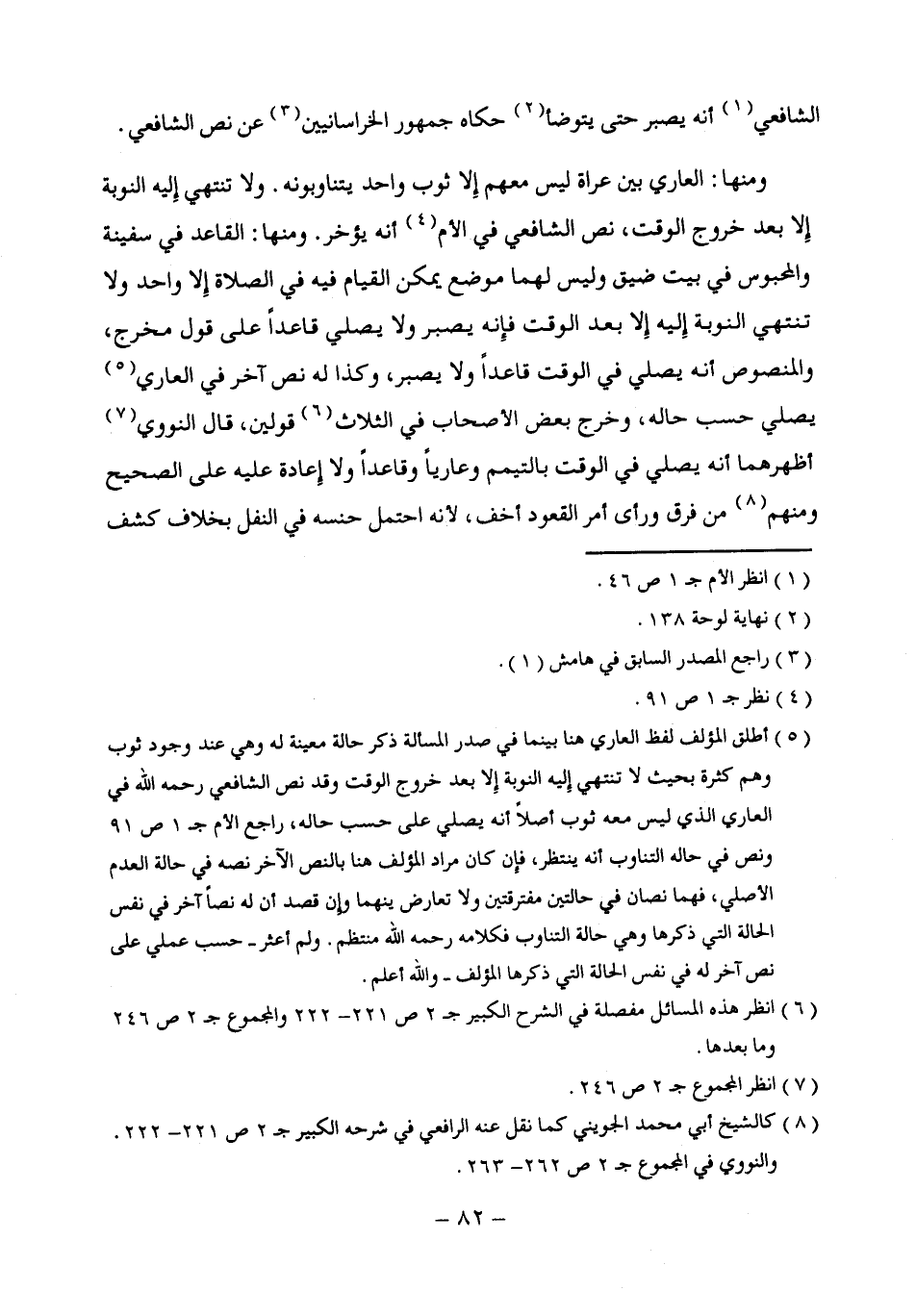 (¬8) كالشيخ أبي محمد الجويني كما نقل عنه الرافعي في شرحه الكبير جـ 2 ص 221 - 222. والنووي في المجموع جـ 2 ص 262 - 263.