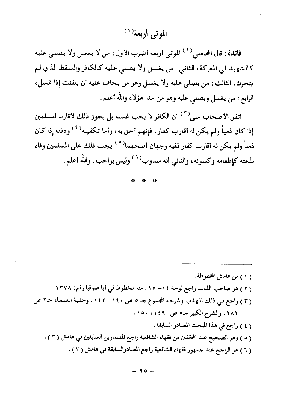 (¬6) هو الراجح عند جمهور فقهاء الشافعية راجع المصادر السابقة في هامش (3).