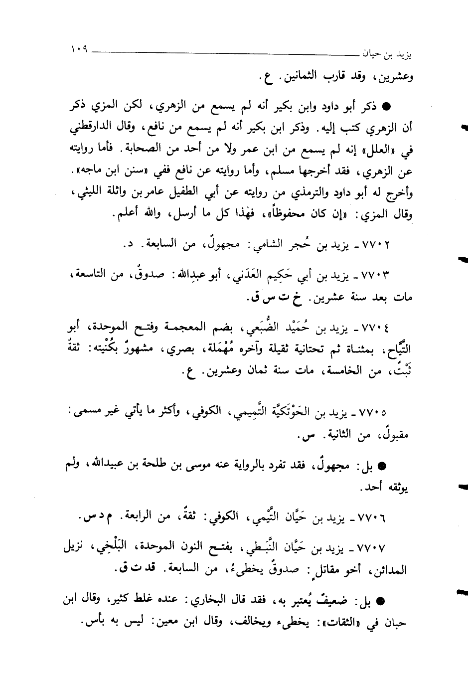 7706 - يزيد بن حَيَّان التَّيْمي، الكوفي: ثقة، من الرابعة. م د س.