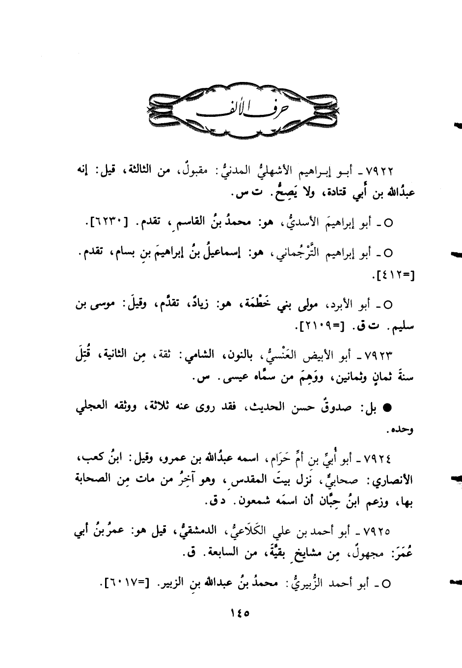7922 - أبو إبراهيم الأشهليُّ المدنيُّ: مقبولٌ، من الثالثة، قيل: إنه عبدُ الله بن أبي قتادة، ولا يصحُّ. ت س.