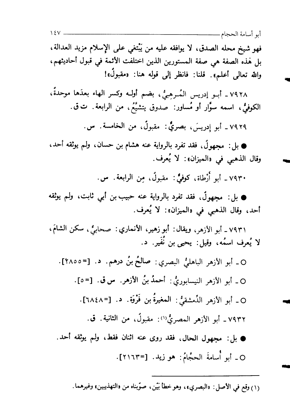 7932 - أبو الأزهر المصري (¬1): مقبول، من الثانية. ق.