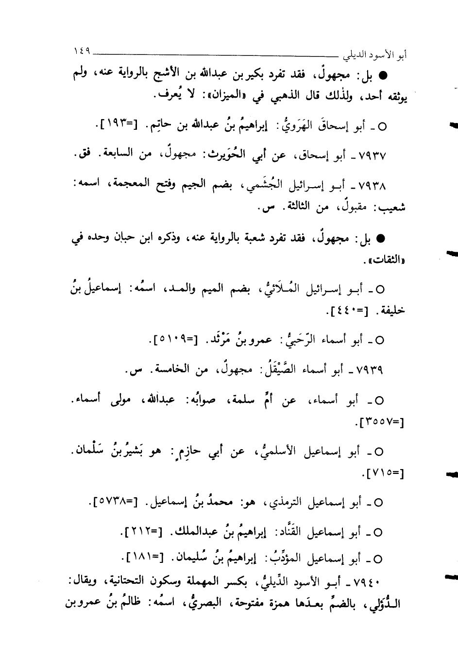 7940 - أبو الأسود الدِّيلي، بكسر المهملة وسكون التحتانية، ويقال: الدُّؤلي، بالضمِّ بعدَها همزة مفتوحة، البصري، اسمُه: ظالمُ بنُ عمرو بن