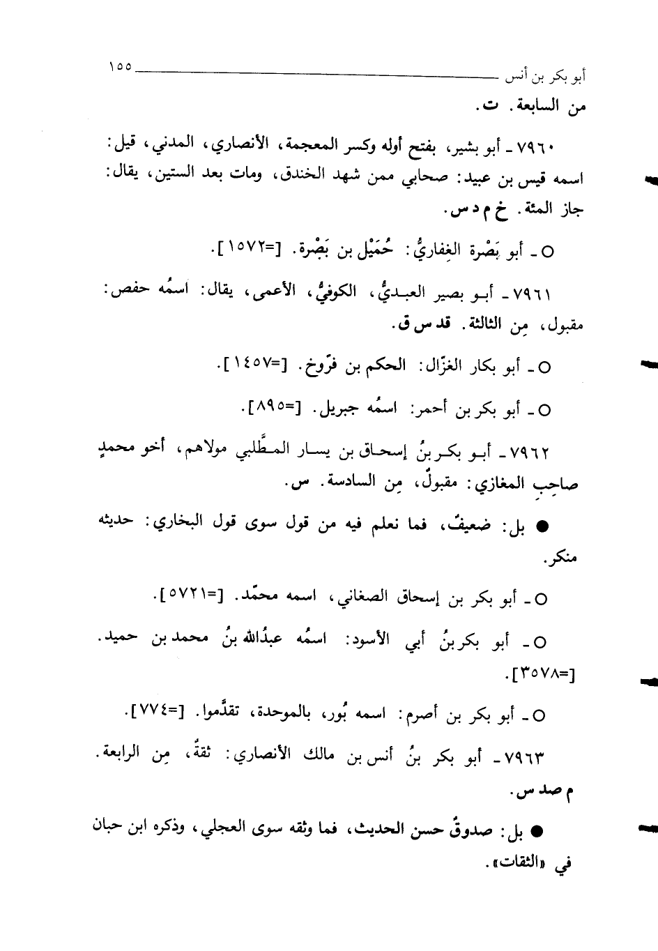 7963 - أبو بكر بنُ أنس بن مالك الأنصاري: ثقة، مِن الرابعة. م صد س.