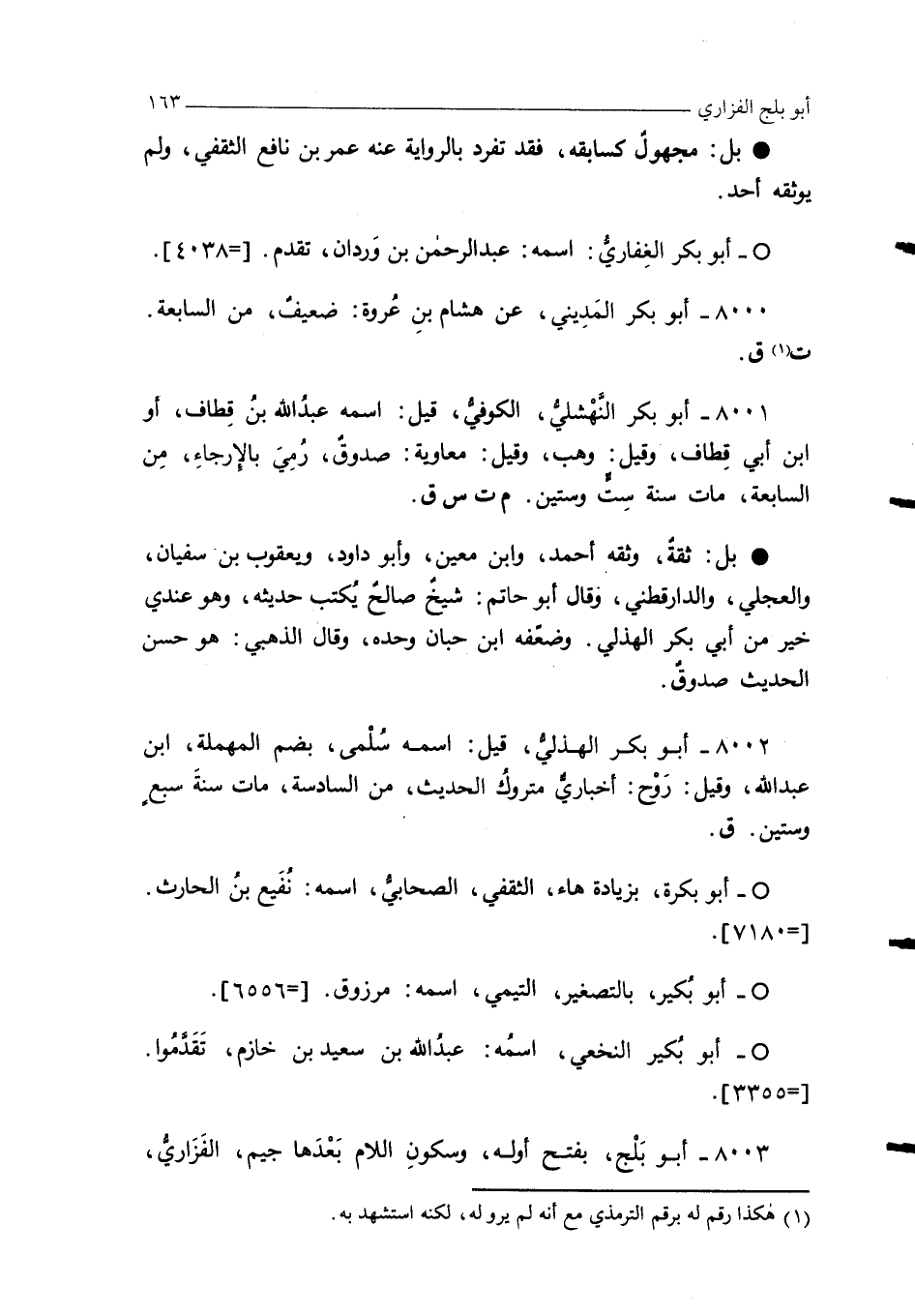 8000 - أبو بكر المَدِيني، عن هشام بنِ عُروة: ضعيفٌ، من السابعة. ت (¬1) ق.