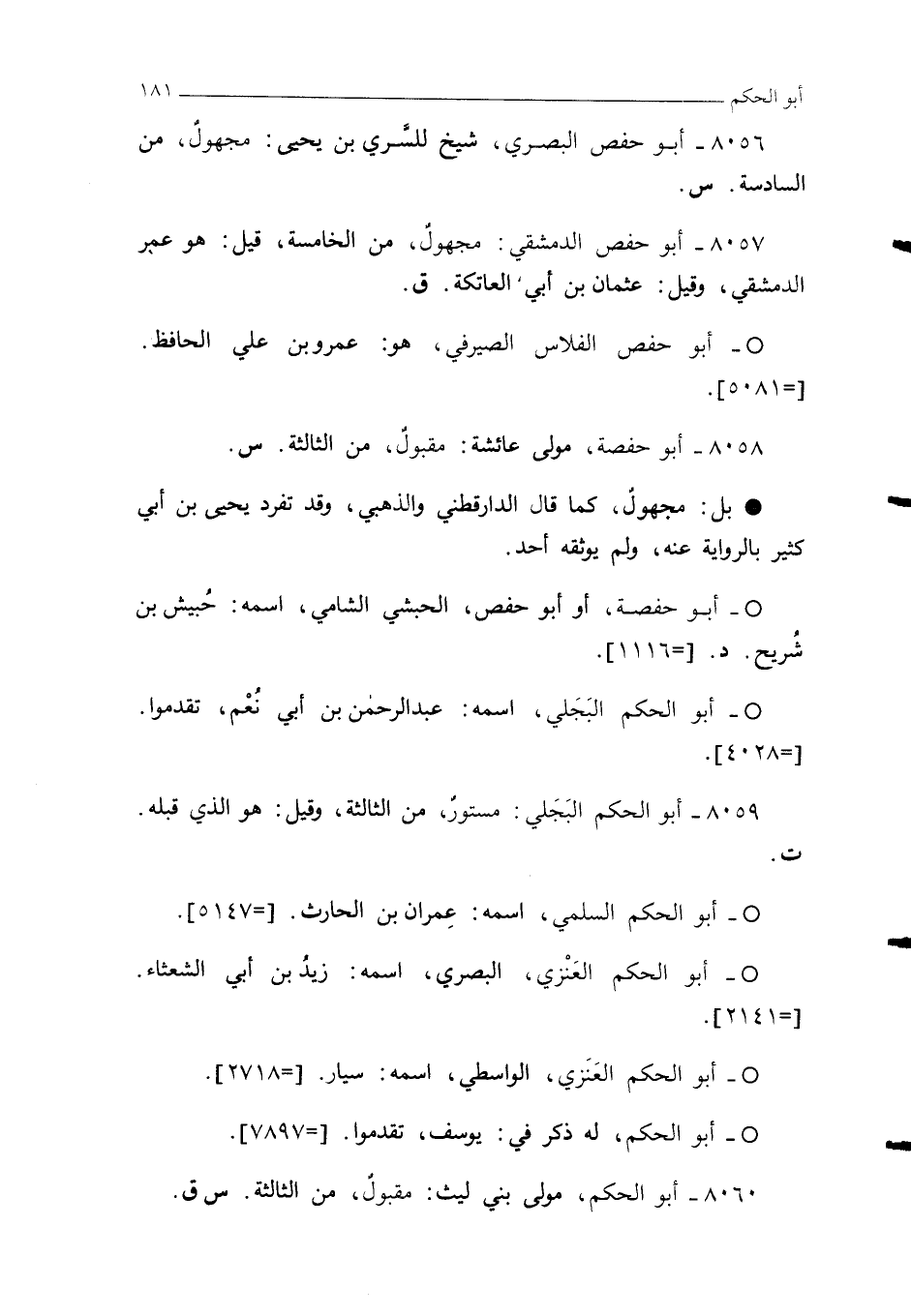 8059 - أبو الحكم البَجَلي: مستورٌ، من الثالثة، وقيل: هو الذي قبله. ت.