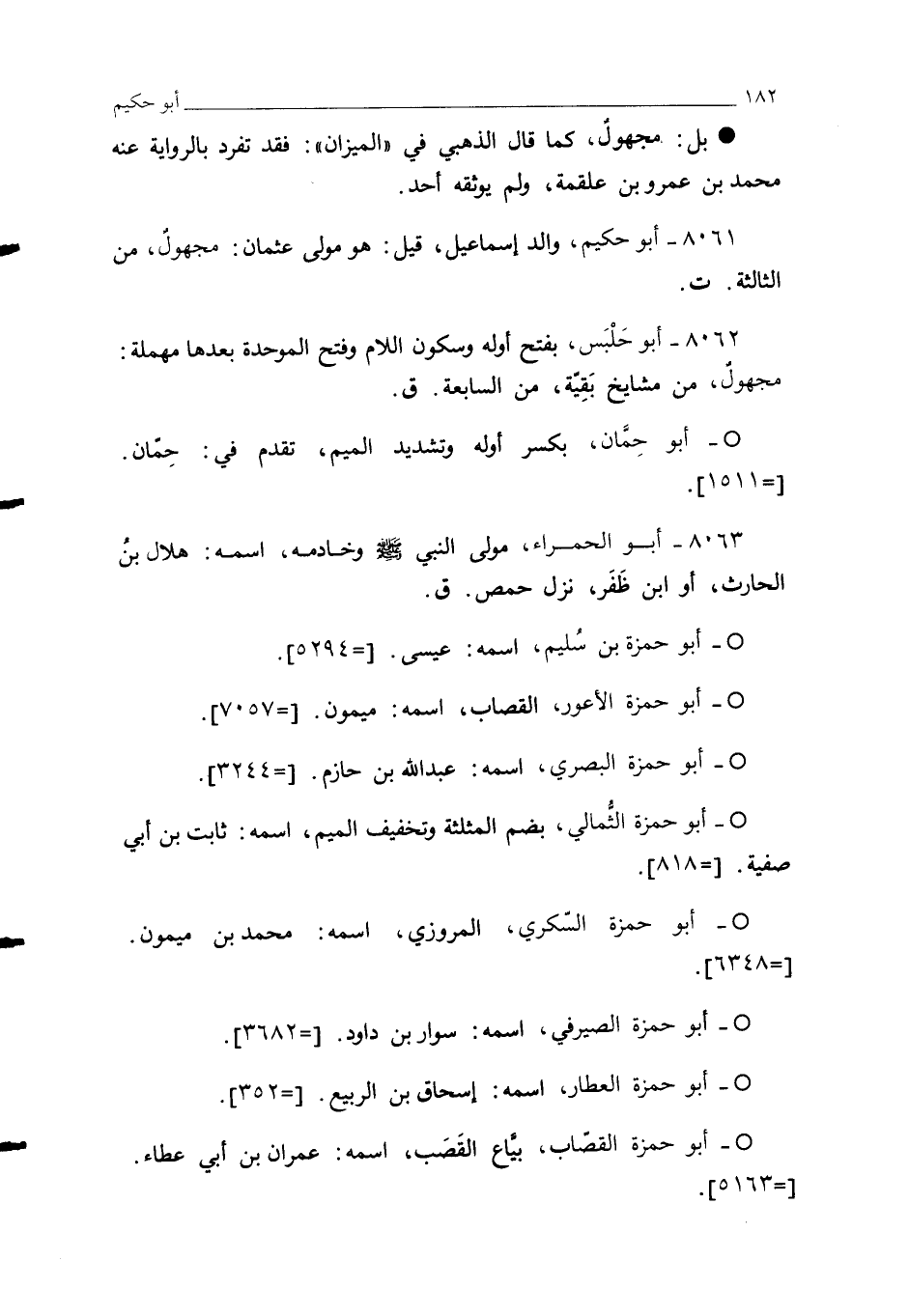 ° - أبو حمزة القصّاب، بيَّاع القَصَب، اسمه: عمران بن أبي عطاء. [= 5163].