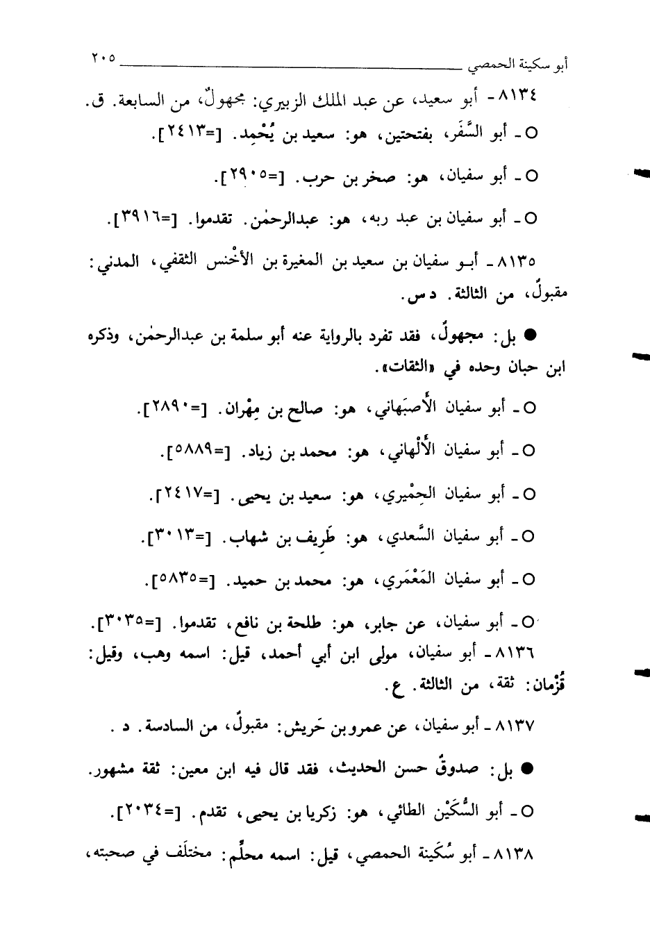 8135 - أبو سفيان بن سعيد بن المغيرة بن الأخْنس الثقفي، المدني: مقبولٌ، من الثالثة. د س.
