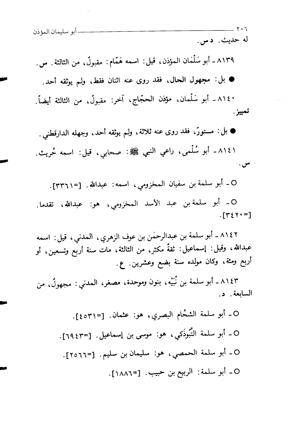 8139 - أبو سَلْمَان المؤذن، قيل: اسمه هَمّام: مقبولٌ، من الثالثة. س.